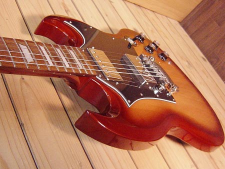 2009年製。ラージピックガードの1966年スタイル!グロスフィニッシュを採用したリミテッドモデルです。セットネック構造ながら薄くバランスの良いボディーは大変弾き易く、幅広いプレイヤーから支持される王道のモデルSG!ロックはもちろんブルースなどにもお勧め!グローバーペグ採用などコストパフォーマンスも高いお買得なモデル。ボディー裏にストラップピン増設の跡がございますが、その他は使用感も少なめで綺麗なコンディションです!