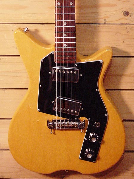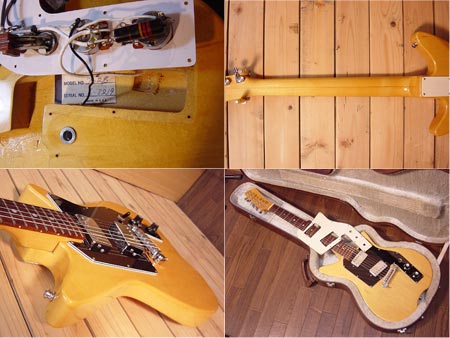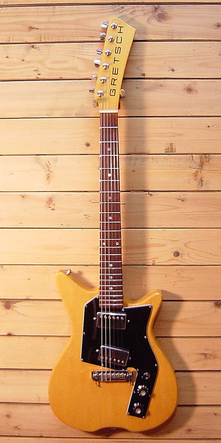 グレッチの中でも大変レアなモデル!メイプル材のソリッドボディーにラージサイズのハムバッカーを搭載!個性的なシルエットがたまらない一本!太く輪郭の良いハムサウンド!歪みの乗りも良く幅広く使える一本です。フレットも7割程度と年代の割りにしっかり残っております!ピックガードは黒に交換されていますが、オリジナルの白も付属してますのでお好みで交換可能!ストラップピンはシャーラー製に交換されています(ストラップ側無)。個性派ギターリストにも是非お勧めです。 ハードケース 付属。