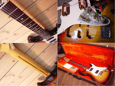 1977年製。アッシュボディー+ローズ指板のストラトをEMG仕様に改造された一本です。ピックガード交換(製作)とボディーにハムバッカーざぐりが施され、現在ではちょっと珍しいEMG 58モデルが搭載されています。ヴィンテージサウンドを意識した58モデルはパワーバランスが良く、アッシュボディーも手伝って艶のある抜けの良いサウンドですで当時のスタジオミュージシャン系の仕様がたまらない一本!改造も工房レベルのしっかりした施工ですので安心してご使用頂けます。フレットは6〜7割程度と年式の割りにしっかり残っておりネックコンディションも良好!施工も古いので全体的にとても良い雰囲気となっております。即戦力のヴィンテージをお探しの方に是非ともお勧めです! オリジナルハードケース・ブリッジカバー・当時の代理店はがき 付属。