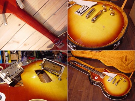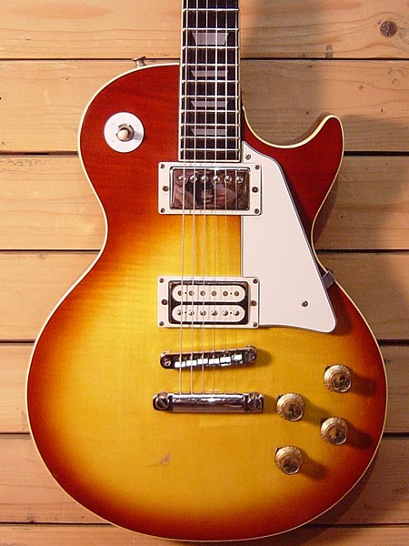 シカモアメイプルのトラ目が美しい一本!ピックアップデイト1975年、丸付きRロゴなので74〜75年のEG480!ホロー構造ボディーにボルトオンネック仕様。レプリカ度は置いといて楽器としてとても評価できる一本です!ピックアップは前後ともオリジナル、スイッチ以外の電気系(ポット・ジャック)は新品交換済みですので即戦力です!ボディートップに大きめな傷がある以外は艶も残ったグッドコンディション!お勧めです。 汎用ハードケース 付属。