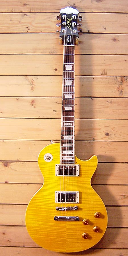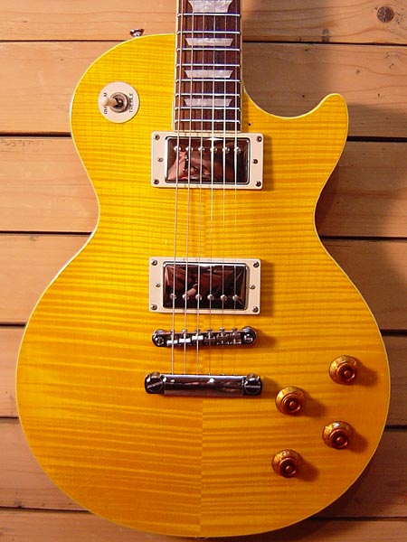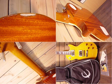 ボディートップがトラ目メイプルトップのプラスグレード!「観ても良し 弾いても良し」の鮮やかなトラ目アンバーカラー!そしてもちろん太く甘い王道のロックサウンドも演出できます!ギブソン監修の姉妹ブランドなので作りもしっかりしており、グローバーペグを含むハードウェアなどのコストパフォーマンスも高くサウンドも申し分ありません!ボディーバックの端に大き目な打痕がございますが、ネックコンディション等は良く大変弾きやすい一本です!お好みで付属のピックガードを付けるのもGood!楽しめる一本です。 オリジナルギグケース・ピックガード 付属。