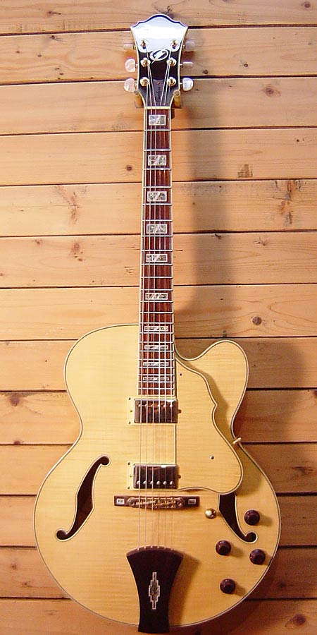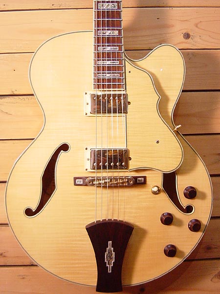 2007年製(定価80,000円+税)。コストパフォーマンスが大変高く人気だったArtcoreシリーズの2ハムバッカー搭載モデル!箱鳴りも大変良く、オリジナルピックアップ「Super58」との相性もGood!甘く太いフルアコサウンドがお手頃価格です!金属部品の曇りは若干ございますが、目立った傷も無く全体的には綺麗なコンディションです!元々付属のローズウッドサドルは欠品です。これからJazzを始める方にも是非お勧めです! オリジナルハードケース・紙類・レンチ 付属。