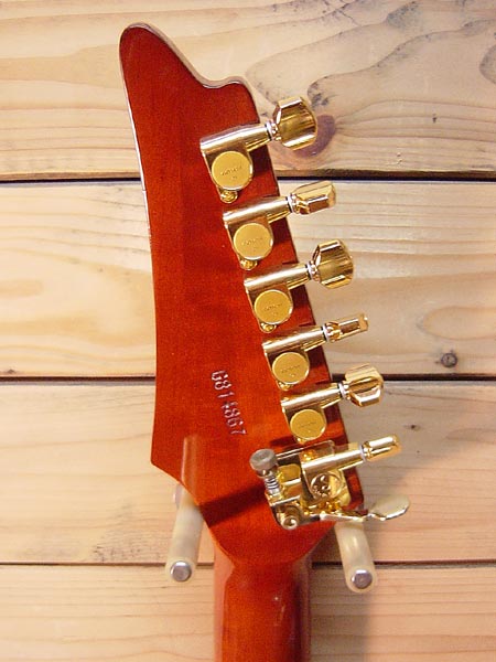 1981年製「デストロイヤー」のフルカスタムモデル!オールラッカーでシースルーブラウンにリフィニッシュ(ヘッドトップは除く)、フレット交換(ジャンボ)、ピックアップにはEMG 81(B) 60(N)、ペグはゴトー製マグナムロックに6弦はシャーラー製のDドロップ(ヒップショット)に交換されています。以上の作業が施されてからの使用感は少なく、フレットもほぼ満タンに残ってございます。現在009-042ゲージにて調整済みでトラスロッドには若干の余裕が残ってございます。この仕様にしたかった方には本当にお買得な一本! 汎用ギグケース 付属。