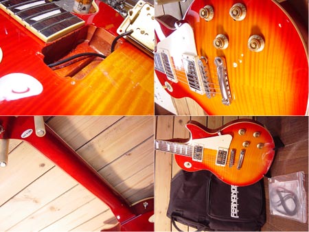 2012年製(定価55,000円+税)。1970年代からギブソン系のレプリカで評価の高い、老舗バーニーのレスポールスタンダードレプリカです。ネックジョイントもディープでは無いですが、ピックアップギリギリまでセットされており、サスティーンと音の深みを引き出しています。オリジナルのピックアップの程好いパワーと音抜けの良さが魅力!歪み乗りも良くロックに最適な一本です。そして特筆すべきは重量で3.6kgと超ライトウェイトの個体!使用感がほとんど無く大変綺麗なコンディション!お勧めです。 オリジナルソフトケース・紙類・シールド 付属。