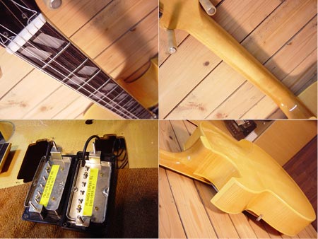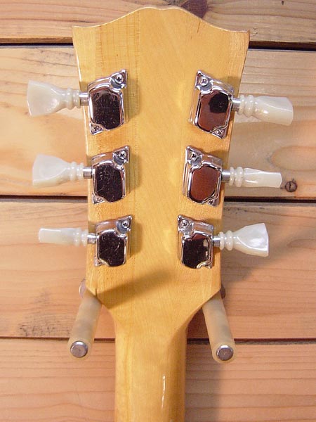 1970年代半ば(1974-75)のES-175レプリカモデル!太甘な箱鳴りがたまらない一本です。ピックアップは近年のFujigen 「Expert EHC-V5」に前後とも交換されています。オリジナルよりもパワー感が増しており、太く抜けの良い音になっております。フタコブペグやブリッジなどはオリジナルパーツのままでございます!フレット残量は6〜7割ほど、ボディートップの変形やネックジョイントの狂いも出ていなく良いコンディション!お勧めです。 汎用ギグケース 付属。