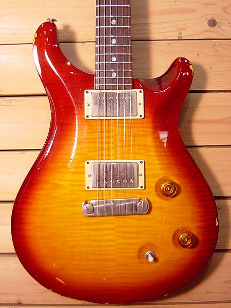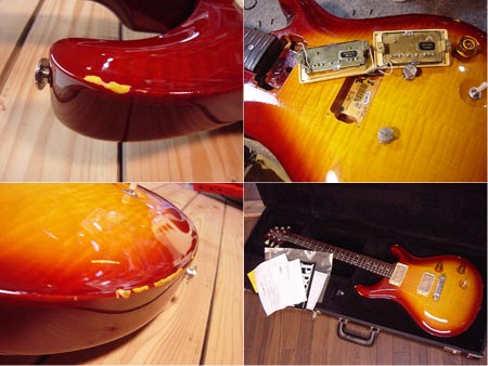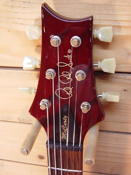2006年製。ギブソン元社長テッド・マッカーティー氏が監修したモデル「McCarty」。カスタムよりボディー厚も増し、ネックもWide Fatグリップを採用!PRSの中でも一番ギブソンライクな太く甘いサウンドなモデルです。ピックアップにはMcCartyを前後に採用、トーン部分がスイッチになっておりコイルタップ機能も備えています。使用感の多く見られるコンディション。ボディー・ヘッドに多数傷がございますがネックや電気系は良好!フレットもすり合わせ作業済みで7〜8割とまだまだタップリ残ってございます!弾きやすいプレイヤーズコンディションの一本。10トップではないですがトラ目も濃く美しいトップ!お値打ちなPRSです! オリジナルハードケース・紙類 付属。