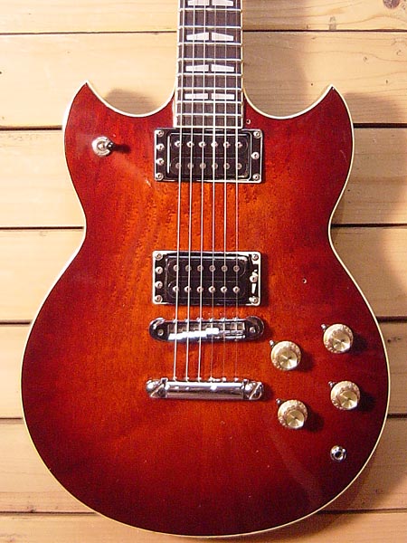 1981年製。名機SGシリーズのミドルクラスモデル!ボディーには薄っすらと木目の出ているバーズアイメイプルトップにナトー材を組み合わせマホガニーネックをセット。ピックアップにはハイパワーで音伸びのある「G-2」を採用しています。バイサウンド(コイルタップ)スイッチも採用されていますのでサウンドメイクの幅も広く使いやすいモデルです。ピックガードは欠品ですが、交換パーツや改造も無くオリジナルコンディション!もちろんガリノイズなど無く電気系も良好です。ピックアップの周りのエスカッションに自家塗装を施されています。フレット残量は7割ほどとまだまだ弾き込めます!小傷や打痕などはございますがバッチリ調整&クリーニング済み!即戦力の一本です。 汎用ソフトケース 付属。