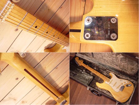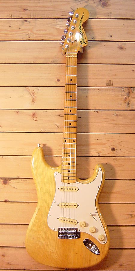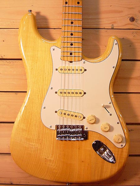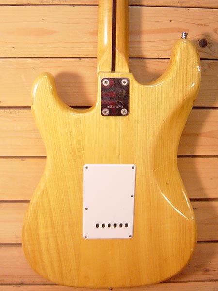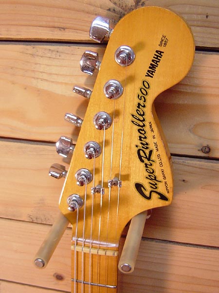 1970年代後半のモデル。ヤマハのストラトレプリカ「スーパーロックンローラー」シリーズです。ラージヘッドにボディーにはアッシュ系材の「セン」を採用した70sスタイルのストラトです。程よい歯切れがあり枯れたサウンドも楽しめる個体に育っています。フレット残量は6〜7割程度、ジャック、ピックガードビスは新品交換すみです。ネックジョイントのビスは交換されています。ブラックファンクな印象のナチュラルカラーのストラト!好きです。※アーム欠品 オリジナルハードケース 付属。