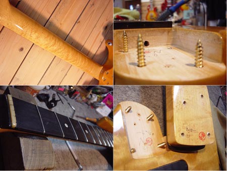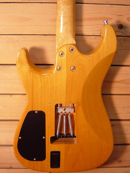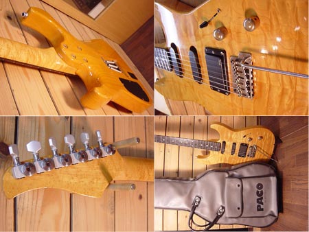 1990年代半ば頃の個体。ビルダー横山氏製作の人気ブランド「エアクラフト」。基本モデル「AC5」をカスタムオーダーしたと思われる一本です。無垢のキルトメイプルをトップにアルダー材を合わせたボディーに、木目が鮮やかなバーズアイメイプルにエボニー指板を使用した贅沢なウッドスペック!ハードウェアはシンプルかつサウンド面を考慮したGOTOH製のシンクロブリッジとシュパーゼルペグ(後付け)を採用しています。ピックアップEMGを採用しており、パワーバランスの良いハムバッカー「58」と定番の「SA」シングルをマウントしています。塗装はラッカー仕上げとなっておりコンポーネントながら「鳴り」を意識した良質な一本です。もちろん演奏性も抜群に良いです!小傷など外装には使用感はございますが、近年にリフレット済みでフレット残量はタップリ!電気系もボリューム・トーンポットは交換済みの即戦力コンディション!お勧めです。 PACOギグケース 付属。