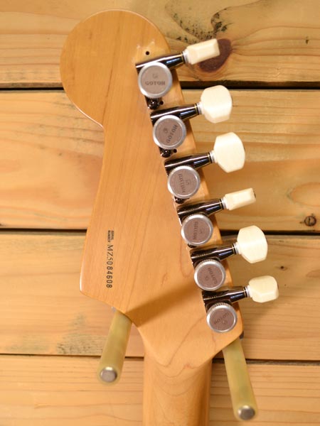 2005年製。生産終了後も根強い人気の「サイクロン」!ミディアムスケール(ミディアムジャンボフレット)の演奏性の良さと、ハム+シングルのシンプルながら幅広く使えるピックアップレイアウトが魅力のモデルです!こちらは中古市場でもやや珍しい「キャラメルメタリック」カラー!深みのあるゴールドっぽさが大変COOLです。ペグがGOTOHのマグナムロック(MG-T)に交換されています。1・2弦のペグポスト付近がチップしていますがチューニングには問題ございません。その他の使用感は少なめで年式の割りに綺麗なコンディションを保っています。フレットの減りも殆ど無く8〜9割ほどとタップリ残っております!ノンオリジナルですが黒のピックガードも付属しています。お探しだった方は是非この機会に。 オリジナルギグケース・保証書(紙類)・アーム・レンチ(サドル用)・ピックガード(黒) 付属