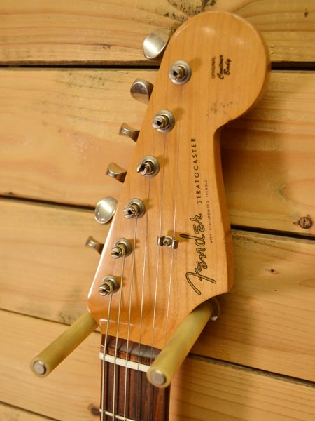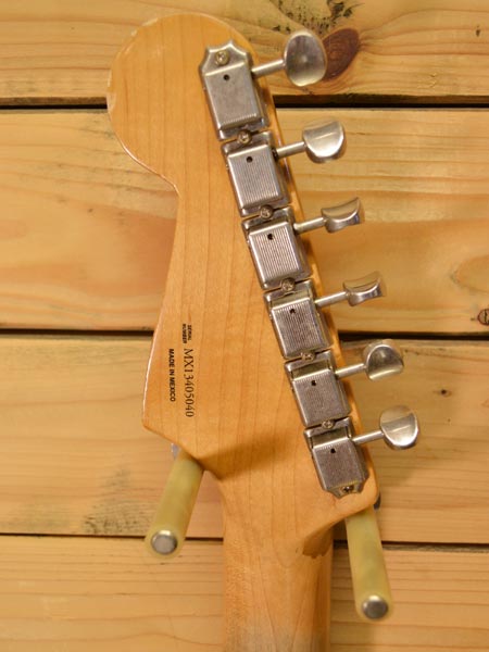 2013年製(当時定価150,000円+税)。長年使い込まれたような風合いを再現したレリックモデル!見た目だけに拘らず#6105フレット(ミディアムジャンボ)やTEX-MEXピックアップ搭載など演奏性やサウンドにも力を入れた人気シリーズです!フレットは7〜8割と十分な残量がございます。難あり箇所は、トラスロッドにテンションがほとんどかかっていない状態でネックがストレートコンディションである事です。トラスロッドをしめる方には十分な余裕がございますが、緩める方には余裕がございません。細い弦はおそらく張れません(09-42以下)。10-46ゲージ以上でレギュラーチューニングして頂く事をお勧めします。太いゲージなど張る方には問題ございません。ボディーのレリック具合もやや広がっています。上記の条件であれば演奏性&質感の良い一本です。 汎用ソフトケース 付属。