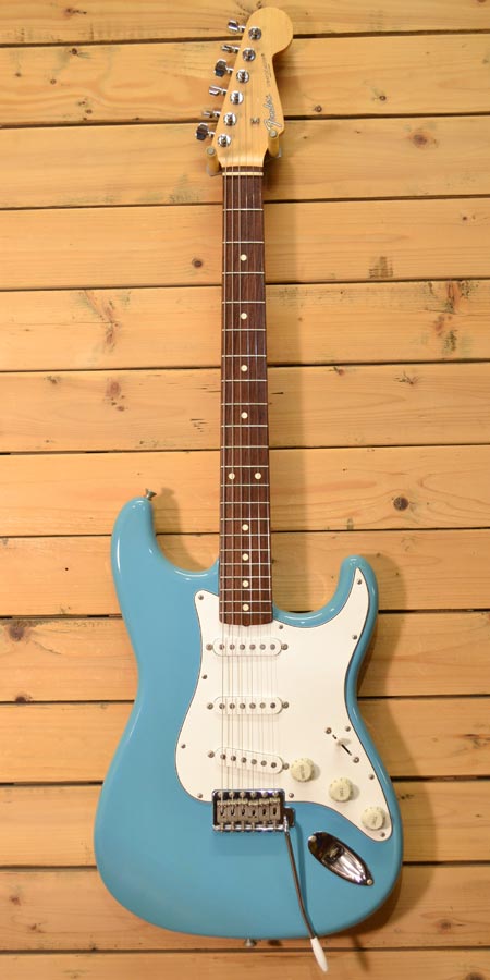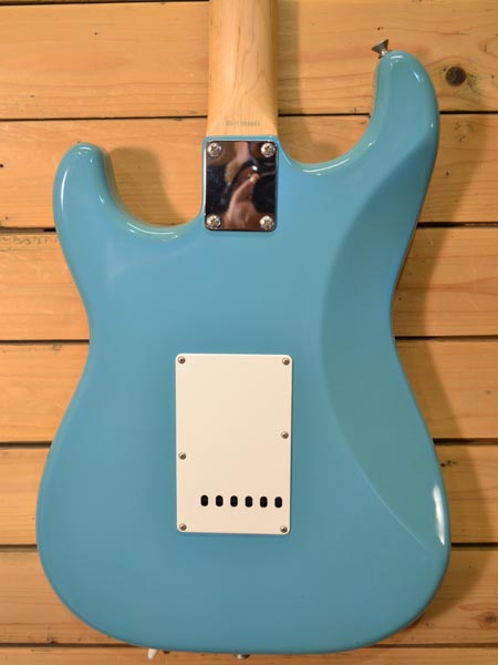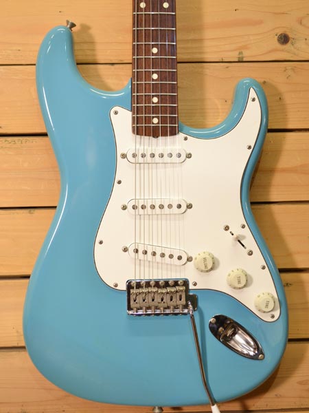 1998〜2000年頃製造のモデル。比較的珍しいカルフォルニアブルーカラーを採用したスタンダードモデル!日本製はもちろん、ローズ指板にバスウッドボディー、ゴトー製ペグを採用するなどコストパフォーマンスも優れたモデルであります。経年変化によるボディーの若干の色焼けはございますが使用感の少なく綺麗なコンディションの個体です。フレット残量もほとんど減りが無くほぼ満タンでございます。このカラーリングにグッと来た方は是非に! オリジナルソフトケース 付属。