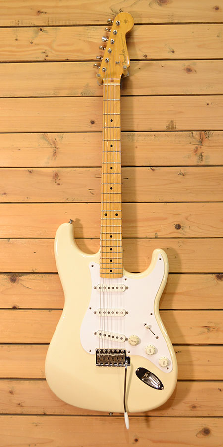 1999〜2002年頃製造の1957ストラトキャスターレプリカ!スムーズなフィンガリングのメイプル1ピースネックにUSA製ピックアップを搭載した人気モデル!パワー感があり歯切れも良いストラトらしいサウンドが楽しめます。ボディーやヘッド周りには小傷など使用感はございますが、フレットの減りは経度で7〜8割ほどと演奏性バッチリ!ボディーの焼け具合も良く雰囲気の良い個体です。ストラップピンはシャーラー製のロックピンとなってございます(ストラップ側は無し)。気になった方は是非この機会に! 汎用ソフトケース 付属。