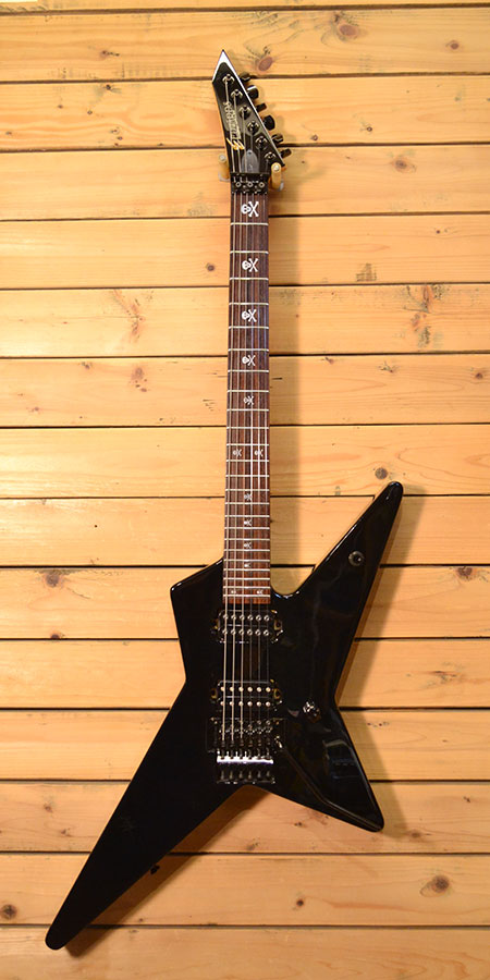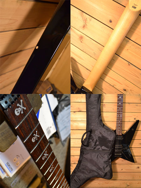 定価115,000円+税。Sex MACHINEGUNSのAnchang Model!ジャパメタの代表モデル「ランダムスター」を基本シェイプとし、メタリカのカークモデルにもあるスカルインレイを採用。ピックアップにはもちろんハイパワーなモデルを搭載しハイゲイン&ロングサスティーンを実現しています。小傷など使用感はございますが、フロイドローズなど金属パーツのコンディションは錆など無くアクションも良好です。トータルバランスに優れた一本!マシンガンズファンでなくてもメタラーなら魅力の詰まったモデル!お買い得です。 オリジナルソフトケース 付属。