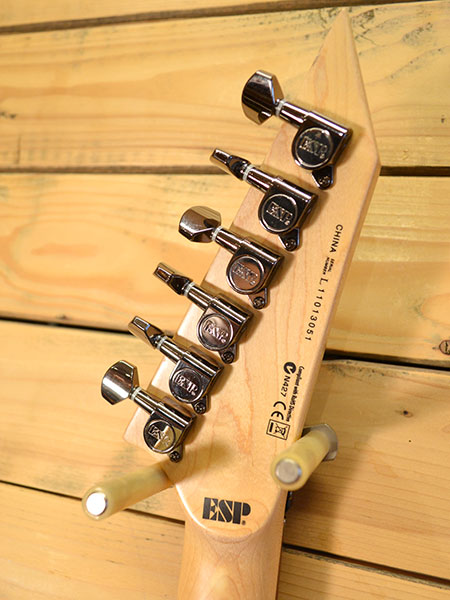2011年製。Metallicaのギタリスト「カーク・ハメット」モデルです!指板のドクロポジションマークが印象的!ESPの「HORIZON」を基本にしており演奏性バツグン!ミディアムジャンボフレットを採用しており高速リフやソロなども考慮されています。ピックアップにはESP製パッシブモデルを採用しておりパワーバランスが良く歪み乗りもGoodです!トーンコントロール付近に浅い打痕がございますが全体的には使用感の少ない個体です。フレット残量もたっぷりございますので演奏性も問題ございません。お探しだった方は是非この機会に! 汎用ソフトケース 付属。