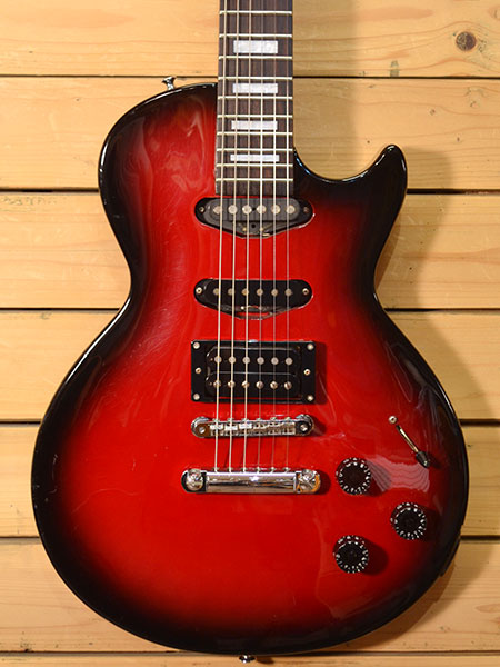 定価85,000円+税。ルナシーのギタリスト「イノラン」氏のシグネイチャーモデル!最上位のESPに及ばずともメイプルボディー採用やゴトー製ハードウェア(ペグ・ブリッジ。テールピース)採用、ボーンナット採用などコスパの高いモデルであります。レスポールシェイプにシングルピックアップを搭載する事で煌びやかなバッキングサウンドを演出できます。センターピックアップは交換されています(モデル不明)。外装には傷が多く使用感はありますがフレット残量はタップリございますので演奏性の良い個体です。まだまだしっかり弾き込める一本!昔を思い出して久々にギターを復活させる方にもお勧め! 汎用ソフトケース 付属。
