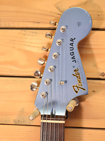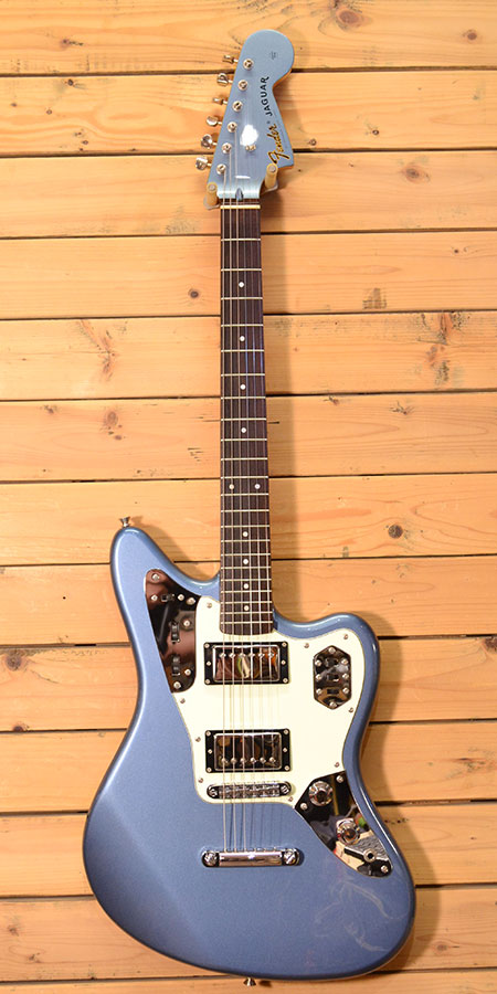 2005年頃の個体。ショートスケールのジャガーにハムバッカーやチューンオーブリッジ等を採用したジャガー・ジャズマスが人気の日本ならではのモデルです。演奏性が良くハムバッカーらしいパワーも得られるので幅広いジャンルのプレイヤーに人気です。日本製らしい造りの良さとペグやブリッジなどのハードウェアも日本製でパフォーマンスも非常に高いモデルです。そしてレアカラーのオーシャンターコイズメタリック採用の個体。使用感がほとんど無く大変綺麗なコンディション!フレットの減りもほとんど無く金属パーツの曇りもほとんどございません。このカラーでこのコンディションは中々出会えないかもしれません。気になった方は是非この機会に! オリジナルソフトケース・紙類 付属。
