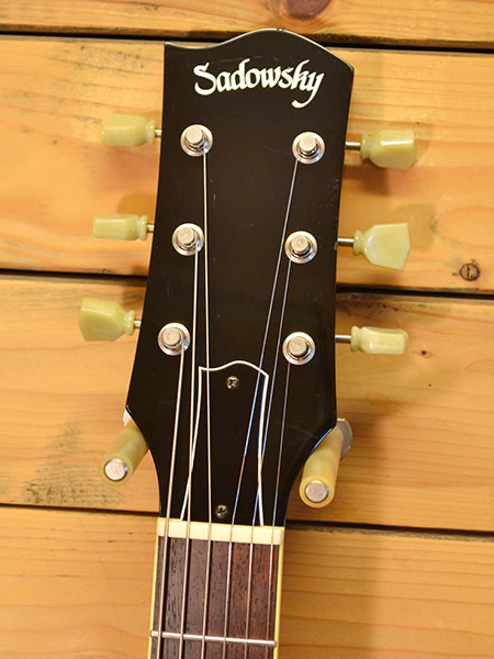 定価300,000円+税。2014年頃のMetrolineシリーズ(日本製)の限定モデルです。なんと言ってもサドウスキーでは珍しいレスポールモチーフの個体。精度の良い木工で組上げられたモデルですが奥行きのあるレスポールらしいサウンドが楽しめる一本です。ボディー材にはアフリカンマホガニー+メイプル(ウェイトリリーフ有り・重量3.7kg)が採用され、ディープジョイントでセットされたネックは同じくアフリカンマホガニーと指板にはホンジュラスローズを採用したハイエンドモデルらしい良質なウッドスペックです。ピックアップにはオリジナルのClassic Wind(Dimarzio製)が採用されており、PAFライクなフロントと程良くパワー感のあるリアマイクがジャンルを選ばず使えます。使用による擦り傷などは多少ございますがフレット残量は8割程とたっぷりございますので演奏性の良い個体です。大変珍しいモデル!気になった方はお早めに! オリジナルセミハードケース 付属。