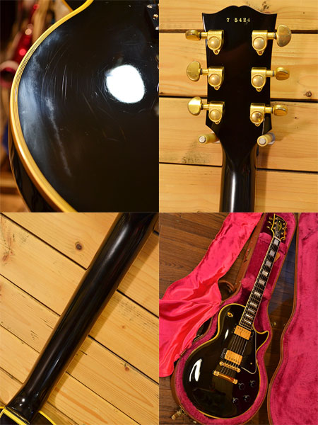1995年製。当時Limited Runsとして限定販売されていた1957年仕様のレスポールカスタムです。オールマホガニーボディーが採用され太く抜けの良いサウンドが魅力のモデルです。カスタムショップ製ではございませんがバインディングの色付けや57Classicピックアップ採用やスタンプシリアルなどリミテッド感を強く感じられる仕様となっております。フレットはレギュラーサイズが採用され(当時物のように細くありません)演奏性も良いモデルです。ピックガードは汎用品に交換されていますがそれ以外は電気系も含めオリジナルパーツでございます。ボディーバックの押し傷やボディートップのエルボー部分に曇りが出ておりますが年式相応の使用感でございます。フレット残量は7割程で演奏性も良い個体です。現在では貴重な良質なエボニー指板も採用されています。気になった方は是非この機会に! 付属品:オリジナルハードケース(Gibson Brown Case)
