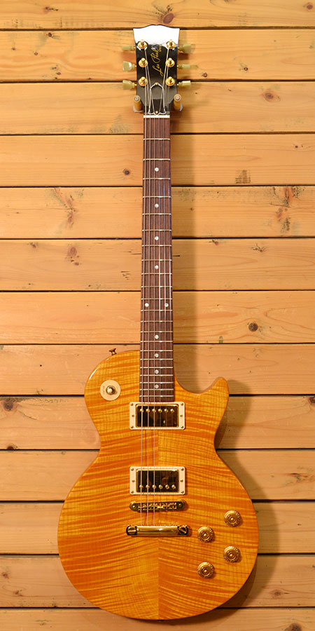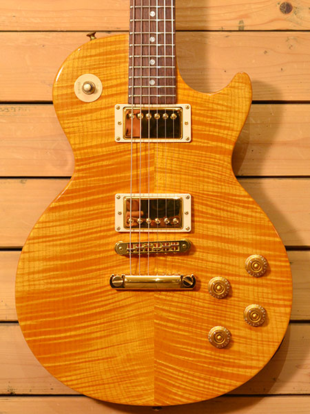 2003年製のレアモデル入荷です!2ハムバッカー&メイプルフラットトップ仕様のレスポールと有りそうで無い珍しい個体!ボディートップのフィギュアドメイプルはカタログ上AAグレードとなっておりますが本機はAAA並みの深く濃いトラ杢であります。ボディーバックのマホガニーも1ピース材が使用されており大変豪華な仕様のモデルであります。全体的な使用感が殆ど無く金属パーツの状態も良いニアミントコンディション!残念な点はロッドカバー下にネジ穴が増えていますが普段は見えません。今後も出てこないであろう貴重なモデル!気になった方は是非この機会に! 付属品:オリジナルハードケース(ダイヤル鍵破損)。