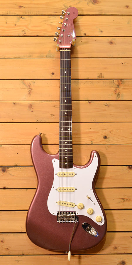 フェンジャパ最終年度の2014年製。バーガンディーカラーに加えマッチングヘッド仕様という珍しい個体です。しかもこのカラーのみ1プライピックガード仕様となっており心くすぐられる一本です。スラブ貼りのローズ指板にアルダーボディーの王道ウッドスペック。ピックアップにはパワーバランスが整えられたテキサススペシャルが採用されています。使用感が少ない大変綺麗な個体です。フレットの減りも軽度で満タン近く残っております。しかもフェンダー製ハードケース(通常別売)も付属されています。希少個体ですので気になっていた方はお早めに。 付属品:フェンダー製ブラウンハードケース。