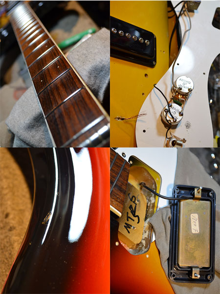 1990年代の黒雲製ベンチャーズモデル。ボルトオン仕様、ボディーバインディング無しの1965年仕様のモデルです。台座にはMoseley Tremoloが採用されピックアップは国産の1800Fが前後にマウントされています。POT/JACKは新品パーツに交換済み。ピックガードネジも新品に交換致しました。細かい傷やお約束のネックジョイント塗装クラック(使用には問題ございません)はございますが全体的には綺麗な個体です。フレット残量は7〜8分山と演奏性も良い個体です。ジャズマスターやLP J'rなどがお好きな方にも是非お試し頂きたいモデルです。バッチリ調整済みの即戦力コンディション!お買得です。 付属品:汎用ソフトケース。