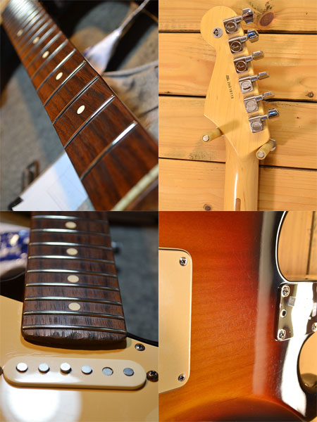 ヘッド裏に60thアニバーサリーメダルが入った2006年製。アルダーボディーにローズ指板の王道スペック!程良くコシと煌びやかさを兼ね備えたストラトらしいサウンドです。程好く弾き込まれた育ちの良い個体!ボディー&指板材も良質で良く鳴っています。現在ダダリオの009-046ゲージにてネック調整済みでトラスロッドには若干の余裕がございます(ゲージアップはしない方が安心かもしれません)。フレット残量はフレット擦り合せ作業済みで6〜7部山ほどで演奏性もまだまだ良いです。PGにシール焼けやボディーバックにバックル傷などはございますが全体的に雰囲気良く育った個体です。お買得なアメスタをお探しの方に是非! 付属品:オリジナルハードケース・紙類・レンチ。