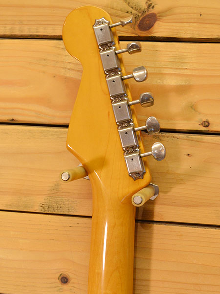 1999-02年頃製造(最終定価76,000円)の個体です。USAピックアップ搭載の1962年ストラトキャスターのレプリカモデルです!スラブ張りのローズウッド指板にバスウッドボディーのマッチング!ストラトらしい歯切れの良さとパワー感のあるクセが無く使い易い一本です。使用感が少ない個体で目立った傷も無くフレット残量は8〜9分山とタップリ残っております。全体も艶感の残ったグットコンディション!お買得な一本です。 付属品:汎用ソフトケース(新品)。