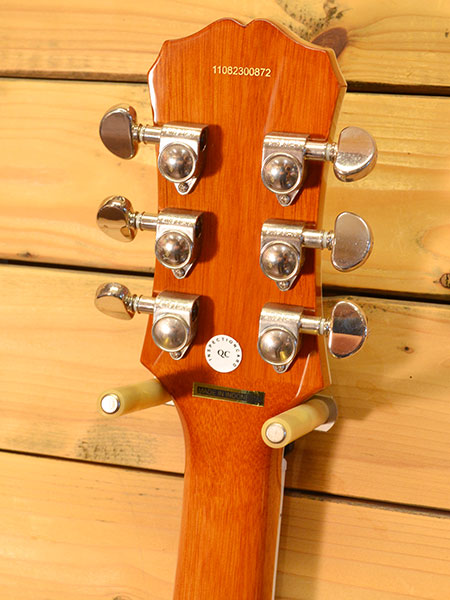 2011年製。エピフォン製のReissueモデル初期ロッドに存在するエボニー指板仕様(その後はローズ)!ピップアップにダンカン NHT-4(JB model)とディマジオ DP240(Vintage minibucker)にアップグレード!もちろんコイルタップコントロールも健在でギブソン系のウォームなサウンドからフェンダー系のブライトなサウンドまで本当に幅広いサウンドメイクが可能な一本です!ブリッジプレートにベンダー跡(穴)とボディー下にストラップピン増設跡がございますが演奏・使用には問題ございません。全体的には使用感の少ない綺麗なコンディションです。フレット残量も7〜8分山とタップリ残っており演奏性もバッチリ!このスペックでこの価格!魅力的な一本です。 付属品:オリジナルソフトケース(小物ポケットのチャック破損・ケースとしては問題なく使用できます)・ピックアップコントロール表・紙類・オリジナルピックアップ。