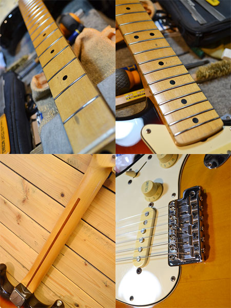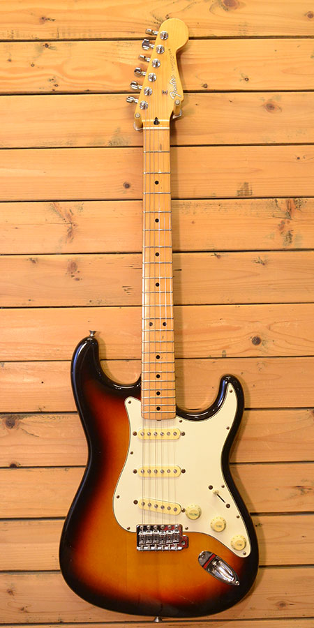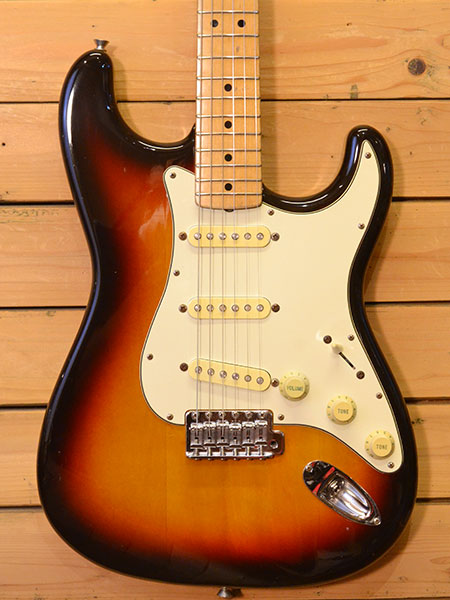 1993-94年頃の個体です。トータルバランスとコスパに優れた人気のモデル!メイプル指板ネックに3Pピックガードを採用!ペグには精度の良いゴトー製を使用しています。ピックアップはセラミックマグネット仕様のモデルが採用されており硬すぎない使い勝手の良いストラトサウンドが魅力です。しっかり弾き込まれた個体で打痕や傷などありますが良い雰囲気に育った一本です。ブリッジサドルは新品に交換。ジャックもUSAパーツ新品に交換してございます。フレット残量は擦り合せ済みで6部山程(ほんのり凹みは残っておりますがビビリなどはございません)となっております。即戦力になるようばっちり調整済みです!最近人気のメイプル指板!お買得です。 付属品:汎用ソフトケース。