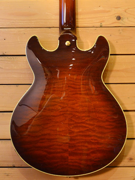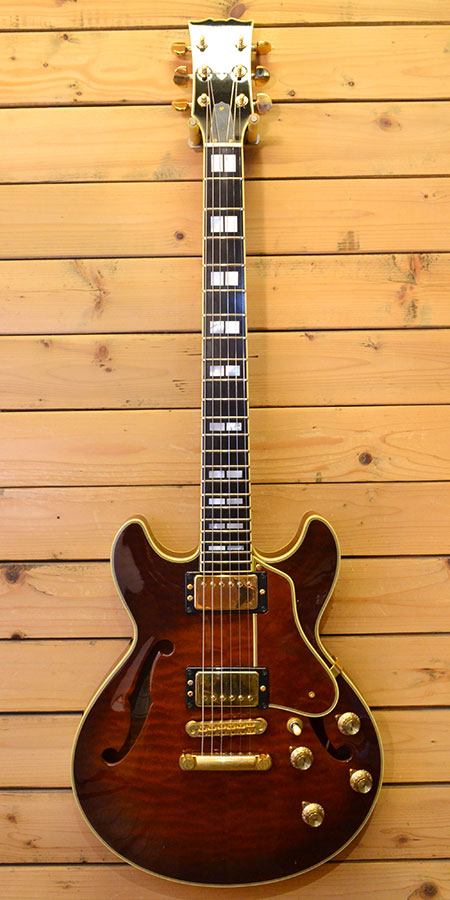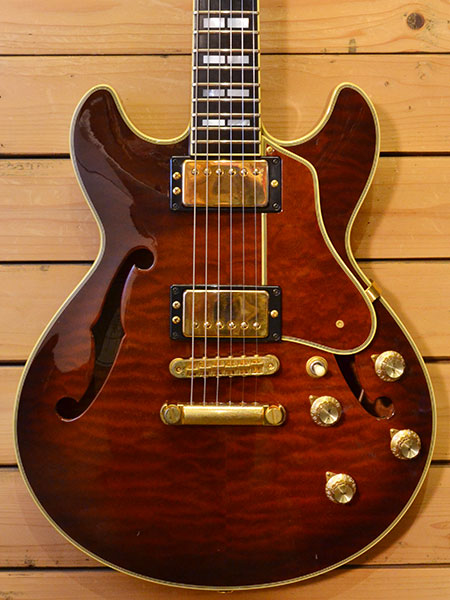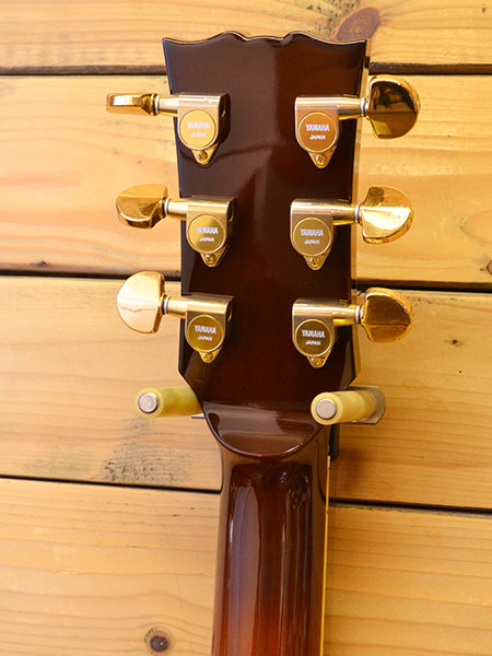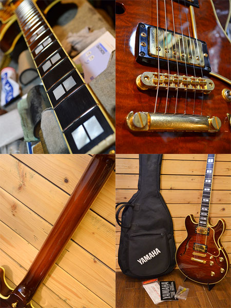 2000年代前半頃の個体です(最終定価220,000円+税)。日本製らしいクオリティーの高いセミアコモデル!ES-339程のコンパクトなボディーサイズが魅力の一本!ボディー材にはマホガニーをトップ・サイド・バックに採用し、心材にはメイプル+スプルースとコンパクトサイズながら音量感が有りセミアコらしい煌びやかなサウンドを実現しています。指板には貴重なエボニー材が採用され、ピックアップにはアルニコXを使用したオリジナルハムバッカーが搭載されヤマハのお家芸バイサウンド(コイルタップ)も採用されていますのでサウンドメイクの幅も広いです。傷は少なめでゴールドパーツの曇りは出ていますが全体的に綺麗なコンディションの個体です。フレット残量はは擦り合せ作業済みで6〜7部山程となっており演奏性もまだ良いです。豪華なスペックの生産完了モデル!お探しだった方はお早に。 付属品:オリジナルソフトケース・紙類・レンチ。