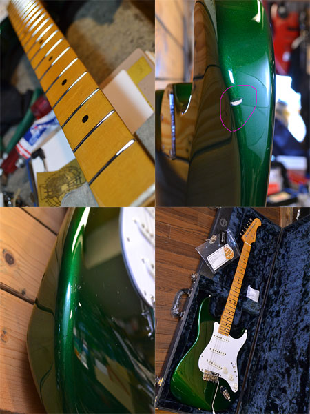 2012年製(新品時売価168,000円)。フジゲン製による造りの良さとコストパフォーマンスの高さが魅力のストラトモデル!ヘリテージウッドを採用した1ピースメイプルネックに質の良いアルダー材ボディーを組合わせた50sスタイル!ボリュームPOTやセレクターなどのアッセンブリーはすべてUSA製が採用されています。歯切れが良くフェンダー系らしい煌びやかなサウンドが楽しめます。ボディーには小傷が多数ございますがフレット残量は8分山程と年式の割にたっぷり残っており演奏性の良い個体です。レアカラーのキャンディーアップルグリーン!お探しだった方は是非のこ機会に! 付属品:オリジナルハードケース・紙類・フレットガード。