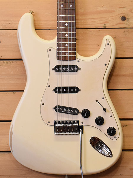 1978年製。ラージヘッドに4点止めジョイント採用の1960年代後半仕様のストラトモデル!ボディー全体を艶消しにしサイドの生地を露出させたレリック加工が施されています。更にはSeymour Duncan SSL-4/Quarter Poundピックアップをリア・フロントにマウント(センターはダミー、3wayスイッチとなっております)。POT/JACKは新品交換済み!フレットは擦り合せ済みで7部山程と年式の割にタップリ残っております。パワー感のあるロック仕様の一本!大変お買得な一本ですので気になった方はお早めに! 付属品:汎用ソフトケース。