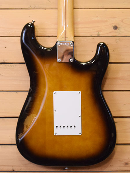 Eシリアル期の1980年代中頃のモデル。Cシェイプのメイプル1Pネックを採用した1957年スタイルのストラトモデルです。ボディー材はバスウッド使用しておりパワーバランスの良いオリジナルピックアップとの相性も良く音作りのしやすいストラトらしいクリアなサウンドの印象です。ボディートップとサイドに打痕があるものの使用感は少ない大変綺麗な個体でございます。フレット残量も8分山以上とタップリ残っており演奏性も良い一本!貴重な左利き用のフェンジャパ!お早目に!※アーム欠品。 付属品:汎用ソフトケース。