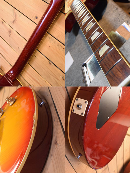 1980年製。Super Real期のSuper Soundグレード!シリーズの始まる過渡期の為、本機はヘッドデカール無し。ハードメイプル2Pトップ、PAFライクなサウンドのU-2000ピックアップ、など本格仕様で人気の高いグレードでもあります。POT類・スイッチ類の電気系は近年交換されており通電良好!バディー周りやネック裏には傷が多く使用感のある個体ですが、フレット残量は8分山程とタップリ残った演奏性の高い一本です。低音の輪郭があり音伸びの良い印象な個体です。気になった方は是非この機会に! 付属品:汎用ソフトケース。