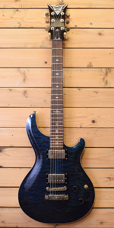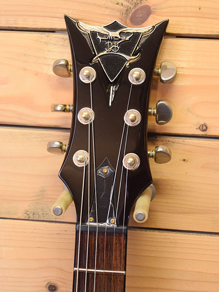 2011年製(定価220,000円+税)。パンテラなどでお馴染みDEANのニューブランド「DBZ」のMade in Japan(フジゲン)モデル!マホガニー+キルトメイプルトップボディーにマホガニーネックを合せた王道ウッドスペック!オリジナルピックアップはリア(抵抗値14.46Ω)のJBライクなハイパワータイプとフロント(抵抗値7.81Ω)のPAFライクなオーソドックスなサウンドが使い分けられます。フジゲンらしいしっかりとした造りで演奏性も良いモデル。ボディートップのポツ傷やヘッド上部の傷、金属パーツの錆びなど使用感はございますがバッチリ調整&クリーニング済みの即戦力コンディション!フレット残量もジャンボフレットで7部山程残りですのでまだまだ弾き込めます!メタルなイメージですが幅広いジャンルに対応した使い勝手の良いモデル!日本製良質セットネックモデルをお探しの方にも是非お勧めです!