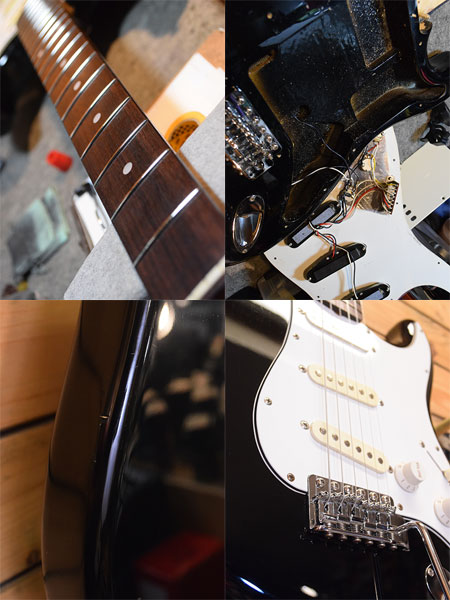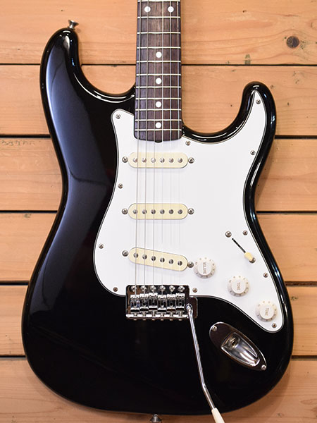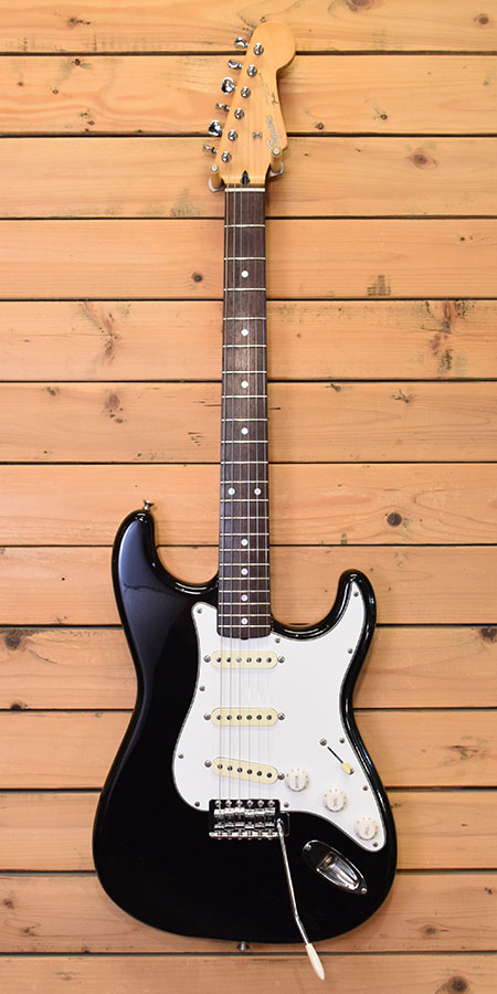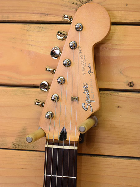 1990年代前半頃の日本製スクワイヤー!ペグなどハードウェア等はコストを抑えた物が採用されていますが全体の造りは丁寧でパワー感のある元気でブライトなサウンドが印象的な個体です。ボディー材にはバスウッドが使用され、ネック指板のローズはスラブ貼りで良質な印象です。ボディーのピックアップキャビティーのザグリが広く生鳴りが良い印象でもあります。年式の割に使用感は少なめでフレット残量8分山以上とタップリ残ったプレイヤビリティーの高い一本!写真では綺麗に見えますが小傷や薄傷など外装には多少の使用感はございます。トータル的には大変お買得な一本!お勧めです。 付属品:汎用ソフトケース。