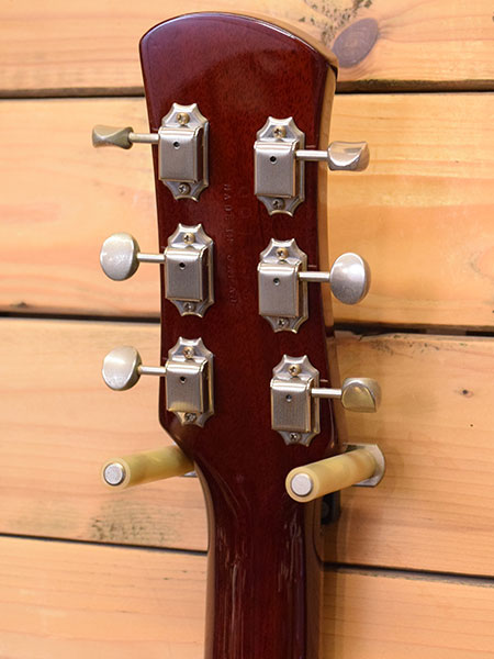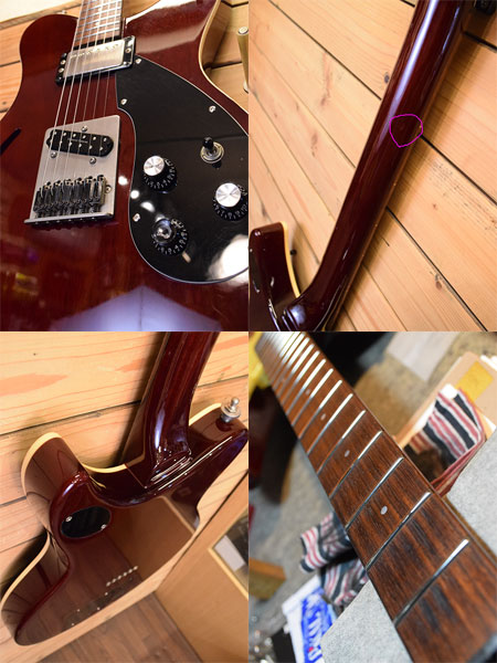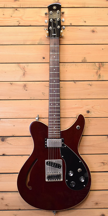 1990年製。Made in Japan!マホガニーホロー構造ボディーにマホガニーセットネックを採用。アコースティックサウンドライクなPiezoピックアップとマグネットピックアップを搭載!ピエゾ・マグネットの切替はもちろんミックスも可能!イントロ(アコギ)→リフ(エレキ)のような演出も可能です。リアピックアップはS.Duncan Little59に交換。フロントPUのバイスイッチは本来2WAYスイッチですが3WAYに交換されています。フレット残量はローフレットに弾き凹みはあるもののビビリなどは無く全体で7部山程残っております。ネックコンディションも良く演奏性の良い個体。珍しいモデルですのでお探しだった方は是非この機会に。※シャーラーロックピン交換・トーンノブ文字欠品。