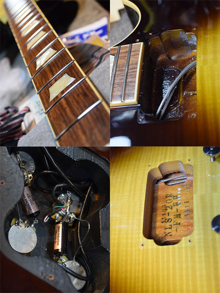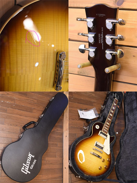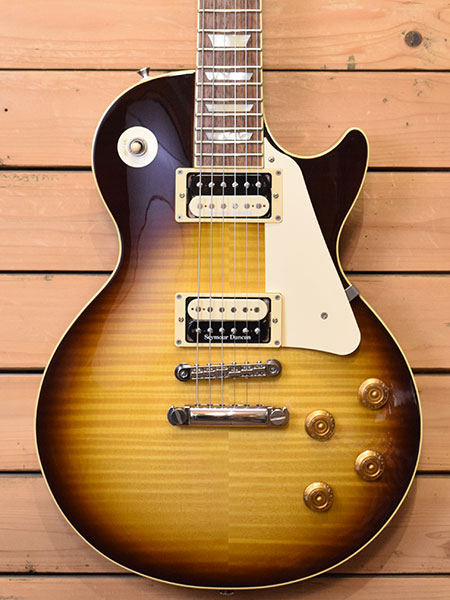 2011年製(定価140,000円+税)。グレコのEG時代から続くフジゲン製レスポール!日本製らしい丁寧な木工から鳴る煌びやかなロングサスティーンが魅力!本機はボディートップにハードメイプルを採用や(トラ杢は突板)ディープジョイントなどレスポール好きのツボを押さえた魅力的な仕様です。ピックアップはSeymour Duncan 「Pearly Gates」に前後ともアップグレードされておりブルースロックにも良く合うブライトでパワーバランスの良いサウンドが楽しめる仕様となっています。ポット類やアッセンブリーもUSAパーツ使用と非の打ち所のない一本!フレット残量は8分山程度と演奏性も良い個体。ボディートップに薄っすら押し傷のようなものがございますが全体的には使用感も少なく大変綺麗なコンディション!ギブソン製ハードケースも付いた大変お買得な一本です! 付属品:Gibson製ハードケース・紙類・レンチ。