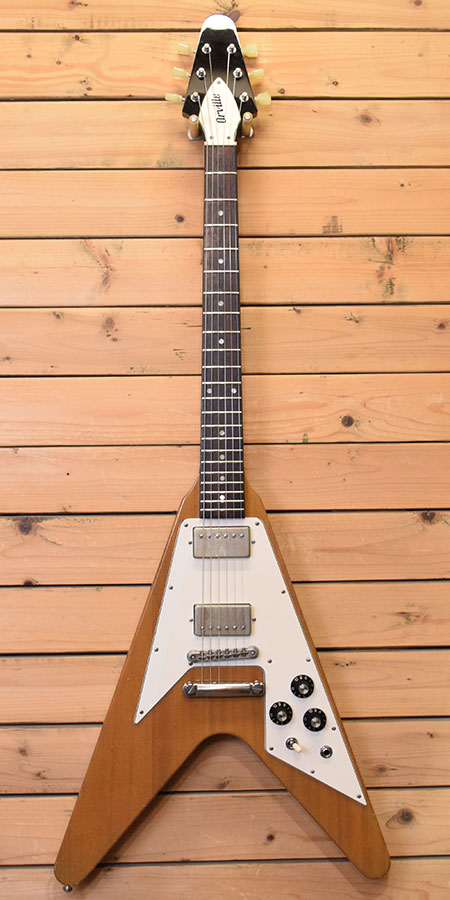 1995年製。フジゲン製造の1974Flying Vモデルです。オールマホガニーらしいブライトでエアー感のあるVらしいサウンド!ピックアップは超PAFライクなSuhr THORNBuckerがマウントされアッセンブリ-は当店ですべてUSパーツにてオーバーホール済み!フレット残量は擦り合せ済みで7部山程と演奏性も良い個体です。年式相応の小傷など外装の使用感はございますが即戦力コンディションとなっております!出現率も低めな国産FVです。気になった方は是非この機会に! 付属品:汎用ギグケース(RITTER製)。