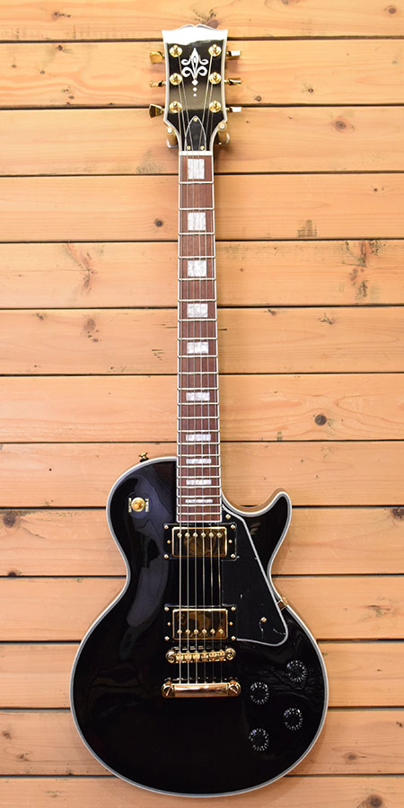 2020年製。艶のあるブラックボディーにゴールドパーツが光るLes Paul Customモデル!ゴージャスでクールな超人気モデルです。ボディー材にはバスウッドが使用されネックにはメイプル+ローズ指板となっております。音伸びが良く太くマイルドなサウンドが魅力です。使用感がほとんど無い大変綺麗なコンディション(ピックガードのフィルムも残っています)!フレットの減りはほとんど無くほぼ満タンに残っており演奏性も抜群!綺麗な状態でお探しだった方に是非お勧めな一本! 付属品:オリジナルソフトケース・紙類・レンチ。