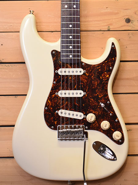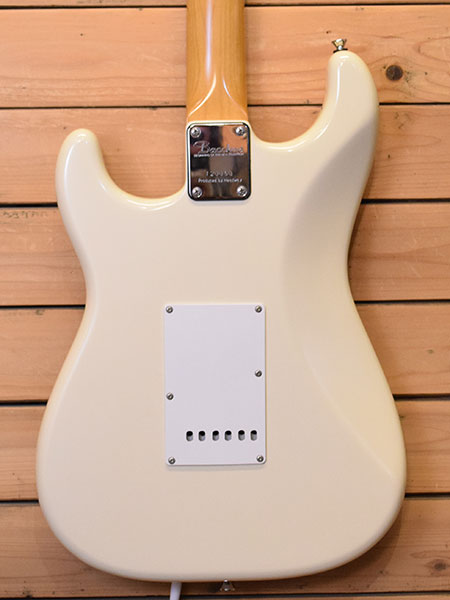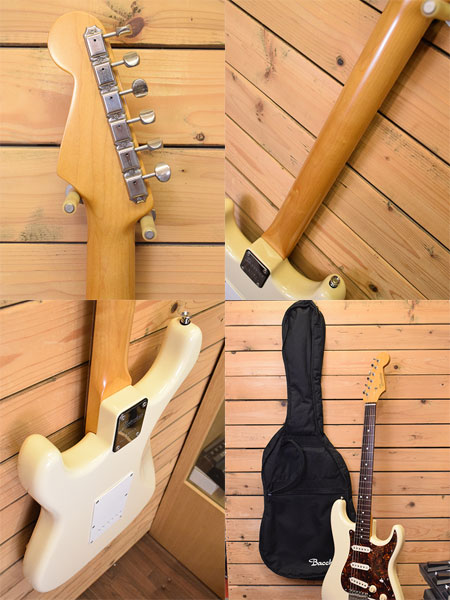 2000年代前半頃の個体。日本製、トップラッカーフィニッシュ、US電気パーツ、アルダーボディー&良質なローズ指板とパワーワードがタップリ盛り込まれた伝説のシリーズ(当時定価98,000円)。スラブ貼りフィンガーボードのラディアスは180R。ビンテージスタイルのナローフレットが採用されています。ボディーポケットに「64」のスタンプがございますが仕様からBST-64Vでは無くBST-62と判断致しました。小傷や黄ばみ(ボディー下側に軽度な塗装負けあり)など年式相応のヤレ感はございますがフレット残量は8分山以上とタップリ残っており演奏性の良い個体です。日本製の良質なモデルが大変お買得価格となっております!気になった方はお早めに。 付属品:Bacchus ソフトケース(オリジナルかは不明)。
