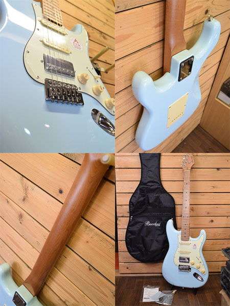 ハイエンドギター等で採用されていたローステッドメイプルネックをお手頃価格で実現させた話題のモデル!ローストする事によりネック強度が増しボディーに響きを伝えやすくしたモデルであります。ピックアップレイアウトは幅広いジャンルに対応したSSHを採用。リアハムはコイルタップスイッチも付いており3シングルのような使用も可能です。ピックアップフィルムまで残っている新同コンディション!お勧めです。 付属品:バッカスソフトケース・アーム・レンチ・紙類。