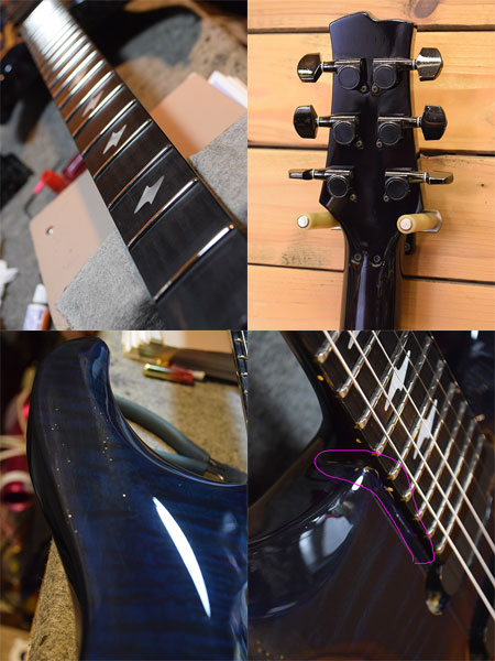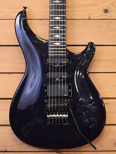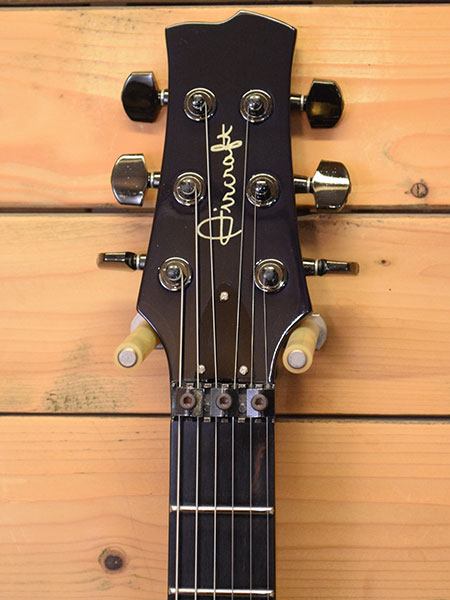 1990年代前半から半ば頃と思われるエアクラフトでは珍しいセットネックモデル!マホガニー+キルトメイプルトップボディーにマホガニー+エボニー指板ネックを採用しています。写真では判り辛いですが色の濃いシースルーブルーカラーとなっております。コントロールは各ピックアップのON/OFFとリアピックアップダイレクトスイッチとなっております。小傷やネック際のトップコートクラック(材には問題無いようです)年代相応の使用感はございます。フレットはジャンボが採用されており8分山以上は残っています。現在009-042ゲージにて調整済みでネックはほぼ真っ直ぐの状態でトラスロッドは締め方向いっぱいでございます。弦高は6弦12Fで1.3mmのローアクションで演奏性の良い個体です。とは言え大変珍しいモデルですのでお探しだった方は是非ご検討くださいませ。 ※アーム新品 付属品:SKB製ハードケース。