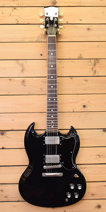 1989年製。Mint Collection期のPRINCESS PRINCESSギタリスト「中山加奈子」モデルです!スモールガード期のSGをベースにしバインディング巻きネックやドットポジションマークを採用、グリップはV形状となってます。ピックアップにはオリジナルの「SCREAMIN」を搭載しておりオールマホガニーボディーも手伝ってブライトで抜けの良いサウンドが印象的です。フレットは8部山以上とタップリ残っており演奏性バッチリ!小傷(角度によっては拭き傷もございます)などは多少ございますが年式の割りに綺麗なコンディション!ミンコレ期らしい造りが良くコストパフォーマンスの高い印象の個体です。気になった方は是非この機会に! 付属品:当時物汎用ソフトケース(合皮製・破れ箇所もございますが使用には問題ございません)。ご希望の方には新品汎用ソフトケースをご用意致します。