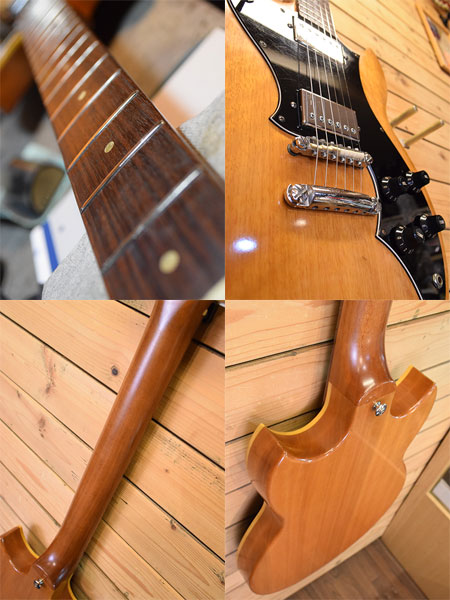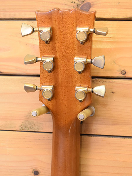 1974年製。フラットトップボディーにアイボリーのセルを巻いたSG-70です。ボディー材にはナトーが採用されネックはアフリカンマホガニーにローズ指板の組み合わせとなっております。乾いた鳴りの良い印象のモデルです。ペグが80年代のYAMAHA製に交換されている以外はオリジナルコンディションを保った個体。フレットはかなり低く大凡3分山程の残量となっております(高さは0.6mm程。ビビリや音詰まりはございません)。ボディーサイドに打痕、リアのTONEノブにカケがございますが年式の割に綺麗な個体でございます。お探しだった方は是非この機会に! 付属品:汎用ソフトケース。