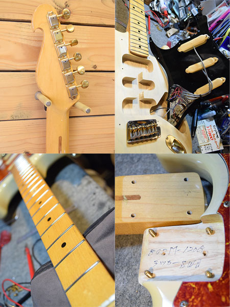 カタログ外のレアなモデルです。年式は定かでありませんがおそらく80年代後半から90年代初め頃かと思われます。ネックポケットには「BC2M120G SWH」の印字あり(Cと2は断定ができませんが時期的(ボディー形状的)にBOモデルでは無いと思われます)。アッシュボディーにラッカーフィニッシュを採用。ピックアップにはL-250が搭載されパワー感のあるシングルサウンドでございます。L-250搭載機は型番がBLとなる為、()内に表記させて頂きました。アームはクロームカラーに交換されています。フレット残量は6〜7部山程。使用感のある個体ですがバッチリ調整済みですので演奏性の良い個体です。気になった方は是非この機会に。 付属品:汎用ソフトケース。