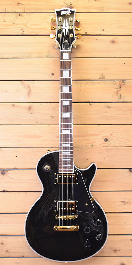 老舗国産ブランド「アリアプロツー」のパフォーマンスブランドによるLes Paul Customモデルです。艶やかな黒にゴールドパーツが映える王道モデル。本家同様セントネック構造を採用。ボディー・ネック材にはナトーが使用されています。オリジナルピックアップのパワーバランスも良くエアー感が有り煌びやかなサウンドです。使用感が殆ど無く大変綺麗なコンディション。フレット残量も満タン近く残ってございます。もちろん当店でクリーニング&調整もバッチリ施してございますので演奏性も大変良い良い個体です。お手頃&演奏性の良いレスポールカスタムをお探しの方に是非お勧めです。※重量3.7kg。