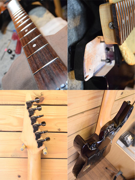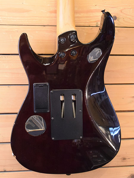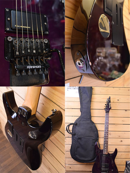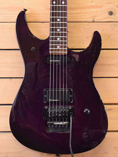 D'ERLANGE(CRAZE/BODY)のギタリスト瀧川一郎氏(CIPHER)モデルです。トレモロにFRT-4を採用した前期仕様の個体(1990年代中頃)です。日本製らしいしっかりとした作り。ボディー材にはこのシェイプのギターでは珍しくメイプルトップ(15mm)+マホガニー(30mm)を採用したLPライクなウッドスペックです。ピックアップにはローノイズで出力の高いF.G.I.アクティブマイクが搭載されています。金属パーツの曇りや小傷などはございますが年式の割に使用感少な目な個体でございます。フレット残量は7分山程と演奏性も良い印象です。メンテナンス・クリーニングの際、セレクタースイッチとジャックは新品に交換してございます。お探しだった方は是非この機会に。 付属品:オリジナルソフトケース。