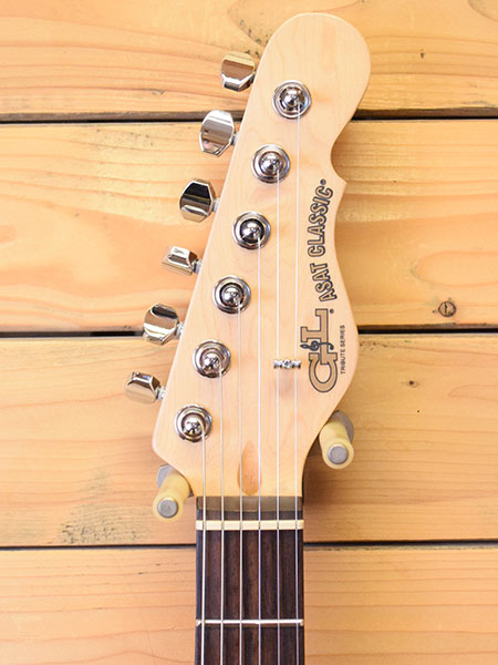 2020年製(Made in Indonesia)。限定生産のThinline Teleスタイルモデル!ホロー構造のボディーはトップにアッシュ材・バックにバスウッドを使用し程好い生鳴りを実現しています。ピックアップにはレオフェンダー考案で有名なG&L MFDを前後に搭載。腰のあるダイナミックなリアサウンドからエアー感タップリのセンター・フロントサウンドが楽しめます。使用感が少なく大変綺麗な個体です。フレット残量は8分山程と演奏性もバッチリ!ボディー裏のネックジョイントプレートがメーカーロゴ入りの物に交換。ヘッドのテンションピンもローラータイプにアップグレードされています(元パーツ有り)。軽量で取り回しが良く生鳴りも良いシンラインモデル!気になった方は是非この機会に。 重量3.0kg。 付属品:オリジナルギグケース・紙類・レンチ・元パーツ。